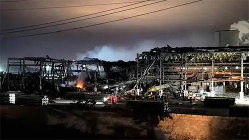 据央视新闻,前方救援力量分析,估计是高温容器发生爆炸,工厂机械有坍塌,周边房子受影响有震裂。