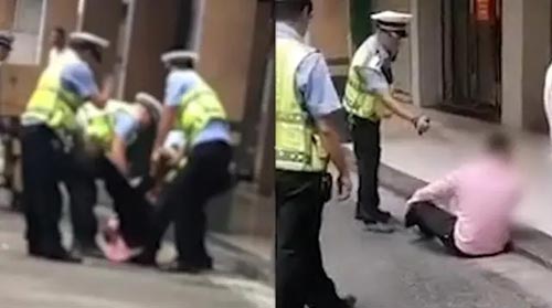 6月12日,网络上曝光的这段视频显示,在广西平果的街头,一名男子坐在街边店铺前的地面上,周围围聚着几名身穿交警制服的人员。视频中,一名执法人员向该男子喷洒了不明喷雾,而该男子并未反抗,只是静静地坐着。随后,四名执法人员合力将该男子控制并移离现场,同时还推走了一辆摩托车。