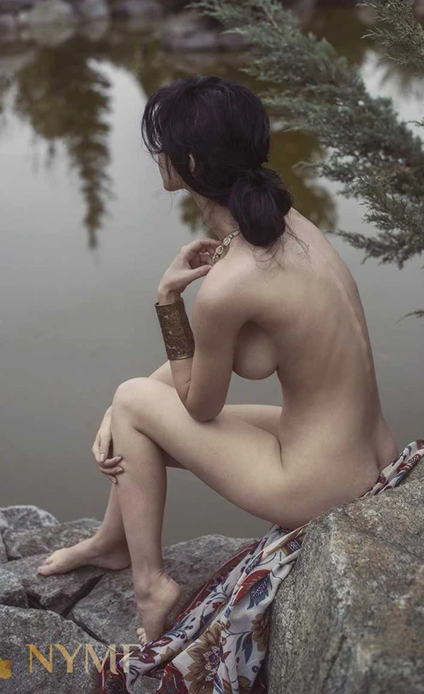 亚洲美女Irene Fah+蓝纱巾美女修长人体写
