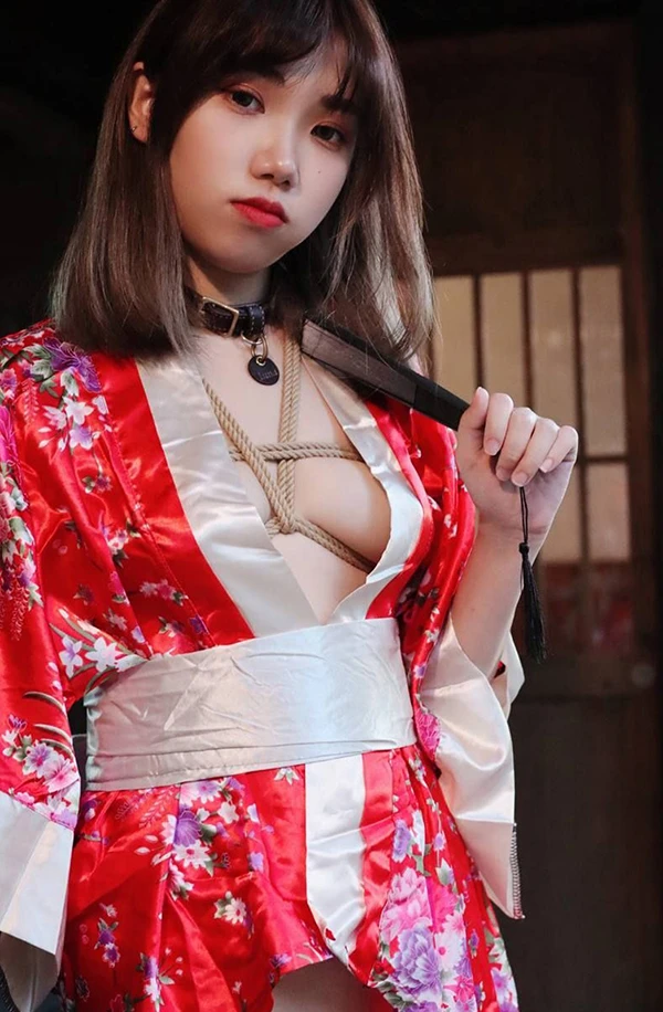 名模阿朱红色紧身胶衣女特工无圣光套图