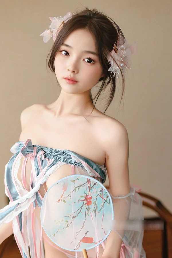 头条女神温心怡之瑰丽白床单蓝套装内衣大