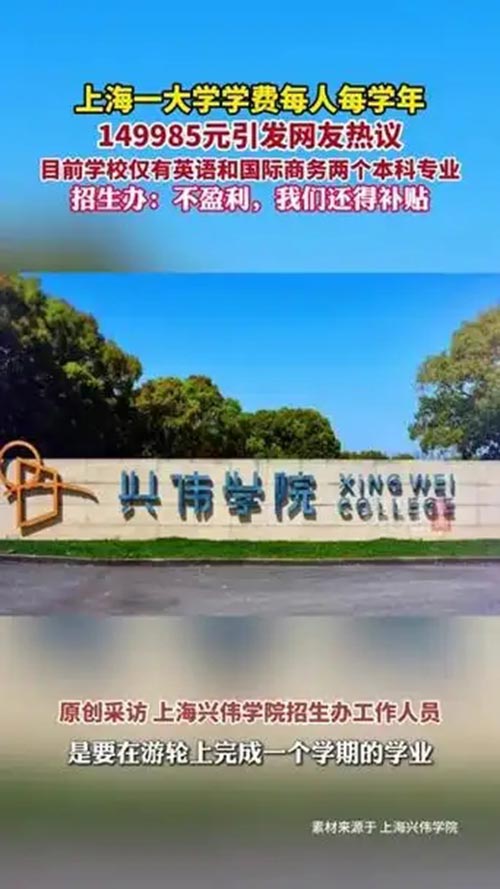 这事儿是上个月刚爆出来的。7月初不是高考志愿填报季嘛,有个考生正对着志愿表扒拉学校,突然瞅见个陌生名字——上海兴伟学院。点进去一看学费栏,当场懵了:149985元/年。他揉了揉眼睛,确认不是1万4而是14万多,吓得赶紧发网上问:“这学校是教咋当首富吗?学费比我家一年生活费还高!”