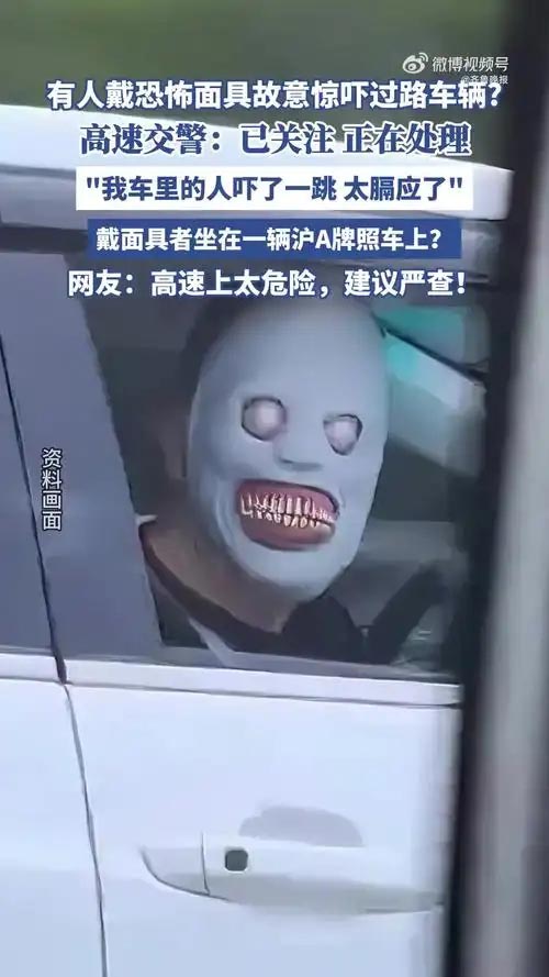 据发布网友介绍,事发8月24日,在长深高速杭州段。他不认识戴面具的人,对方摇下车窗注视车辆,怀疑是故意为之。“我坐在后座拍的,我车里的女生吓了一跳。太膈应人了。”