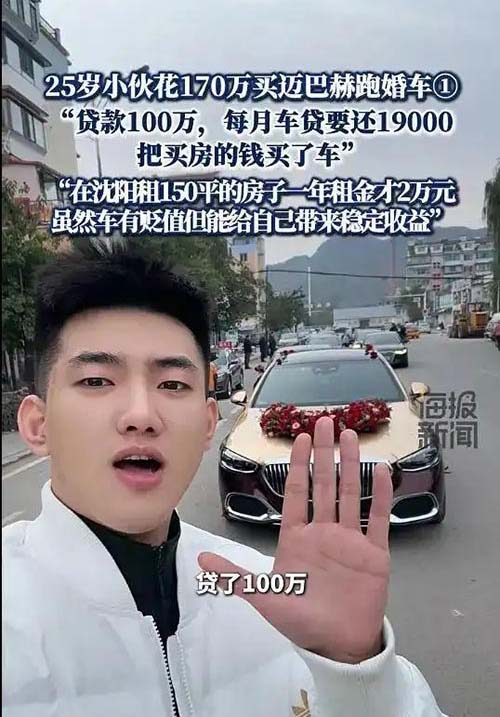 原标题:辽宁沈阳25岁小伙花170万买迈巴赫跑婚车:贷款100万,每月还车贷19000元,加油2500元,一个月稳赚2万元