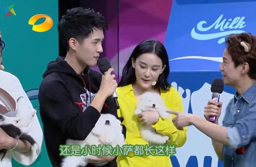 4:刘昊然出场时抱的狗狗是:萨摩耶。