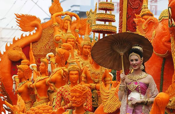 为欢度“双佛节”,泰国各地都举办各种庆祝活动。其中泰国旅游局和苏林府于8日举行象背诵经和巡烛游行。活动上,来自苏林府各大名寺的僧侣们举行了巡烛仪式,精彩的歌舞表演和大象巡游更是将活动推向高潮。