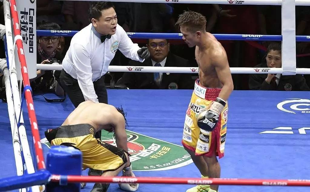 拳台中央,木村翔系上了曾经属于邹市明的WBO蝇量级世界拳王金腰带,坐在围角处的邹市明低着头,让助手解开拳套,他将脸埋在了阴影里。