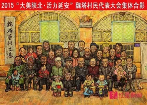 9月29日晚7点,老蒋家窑洞院坝上,锣鼓喧天,男女老少扭起了秧歌,从北京来写生的18名学生也走出窑洞,一起摇摆。