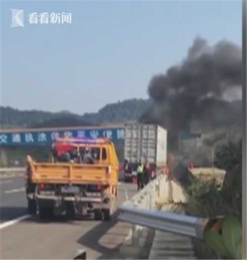 高速交警一支队九大队一中队民警段龙:“因为我们的一号隧道是一个缓上坡,他车子在这个上坡爬行的过程当中呢,就比较吃力。然后刚刚出这个隧道的时候车辆就熄火了 ,然后他下面他就感觉到那个电瓶温度就异常的高,然后他就滑行到应急车道停下来,那个时候电瓶那儿就已经起火了,然后就从整个机舱、驾驶室开始燃烧。”