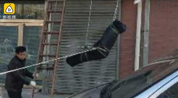 实拍辽宁丹东男子杀同居女友母子后跳楼自杀现场视频
