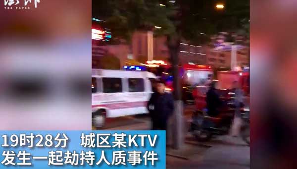 实拍岳阳万豪时代KTV男子劫持人质视频