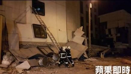 台湾花莲县附近海域6.5级地震,商校街饭店大楼倒塌。据联合新闻网报道,台湾花莲县自周日(4日)起便地震不断,令市民担惊受怕。花莲近海周二(6日)深晚11时50分左右,再发生6级地震,震源深度达10千米,全台均感到震动。其中以花莲市及宜兰南澳震感最强,震度达7级,而合欢山震度亦达5级,花莲 、宜兰、新北、台北4级以上。