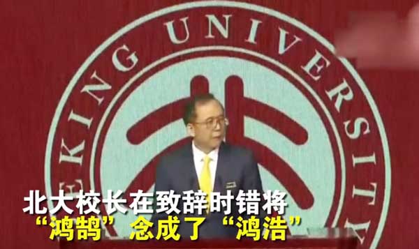 我们发现,不是北大校长不栽跟头,而是校长在挑日子。在北大建校120周年大庆这样的场合,在教育部副部长的监督之下,北大校长林建华把“鸿鹄(hú )志”念成了“鸿浩(hào)志”。很多人都在质疑:堂堂北大校长,怎么还读错字呢?