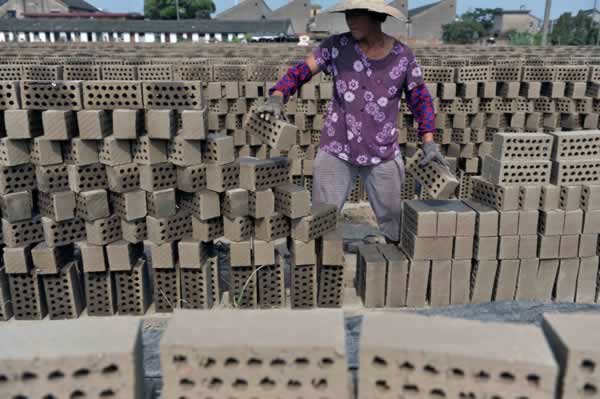 一次夹着3块砖,少说也有7斤重,一车下来,这个动作重复数百上千次,刚开始,她们累得端碗手都发抖,慢慢习惯了,也就不觉得苦累了。据一位砖窑厂的工人说,他们这里是计件制,干的多拿的多,除了阴雨天气,一个月干得好能挣到4千元以上。
