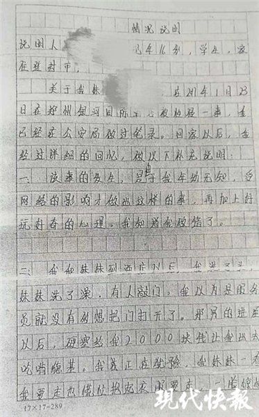 2018年10月8日,现代快报记者联系上了家住河南登封的发帖人王女士。王女士告诉记者,2017年1月23日,她15岁女儿晓裴(化名)在郑州银河大酒店被人强奸。报案后,郑州市郑东分局久久不予立案。之后,他们申请郑州市检察院进行立案监督,检察院却以5条不予立案理由进行回复。王女士称,她绝望之下到郑州市监察委信访窗口递交了控告材料。但4个多月过去,一无所获。