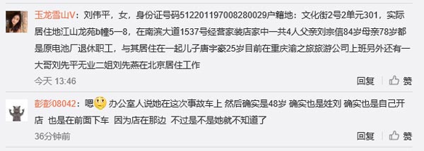 @彭彭08042:嗯,办公室人说她在这次事故车上 然后确实是48岁 确实也是姓刘 确实也是自己开店 也是在前面下车 因为店在那边 不过是不是她就不知道了