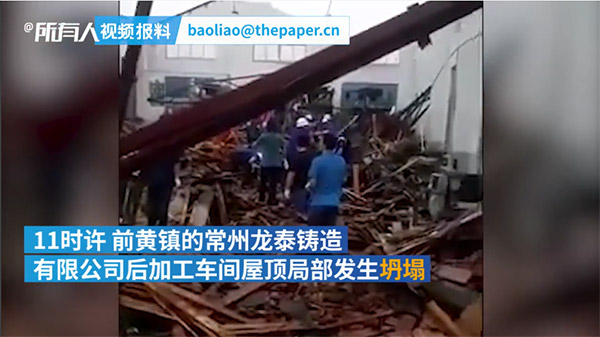 常州龙泰铸造公司车间屋顶坍塌现场视频