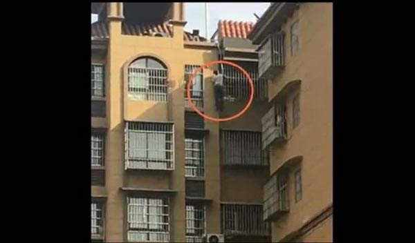 实拍男子与前妻吵架留遗书在31楼阳台上吊身亡现场视频