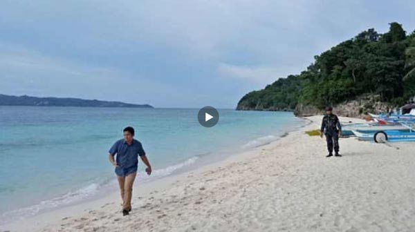 实拍两名中国游客在菲律宾长滩岛露天小便被抓现场视频