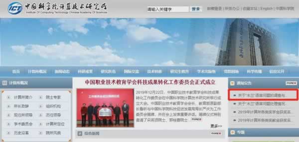 1月19日,中科院计算所在官网发布《关于“木兰”语言问题处理情况的说明》称,该所已对当事人刘雷做出停职检查的决定;并表示,对该问题开展进一步深入调查,将尽快公布处理结果。