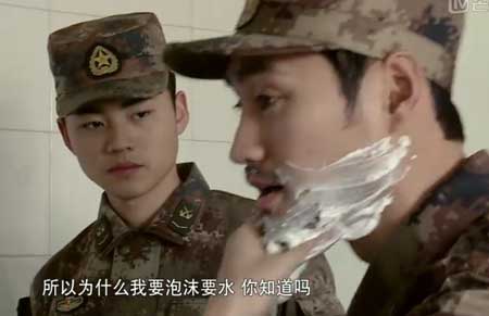 真正男子汉:袁弘被要求30秒刮胡子崩溃。节目中在督促袁弘刮胡子时,班长不经意的一句“我就是你的镜子”,都快融化了网友的心;在练习端枪姿势时,袁弘眼睛不甚飞进沙子,班长又体贴给其吹吹。两人四目交接的那一刻,更是满满的爱,男男CP的美丽画面让人不敢直视。