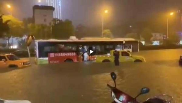 实拍长沙暴雨多条路被淹公交车进水司机弃车游泳自救视频