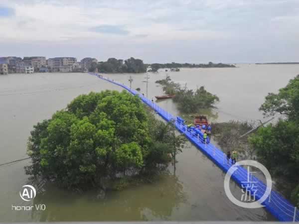 (原标题:江西鄱阳三村庄成“孤岛”,镇政府一天建成370米浮桥解决出行难)