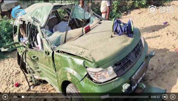 印度一辆军车遭遇车祸2军官死亡 惨烈现场曝光