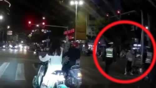 汕头交警微信公众号发布通报:2月3日晚8时37分左右,龙湖交警大队在长江华山路口执勤时,一男子蔡某无证驾驶无牌证摩托车冲卡逃避检查,协助执勤辅警李某上前用脚踹车,致使摩托车倾倒,蔡某未受伤。