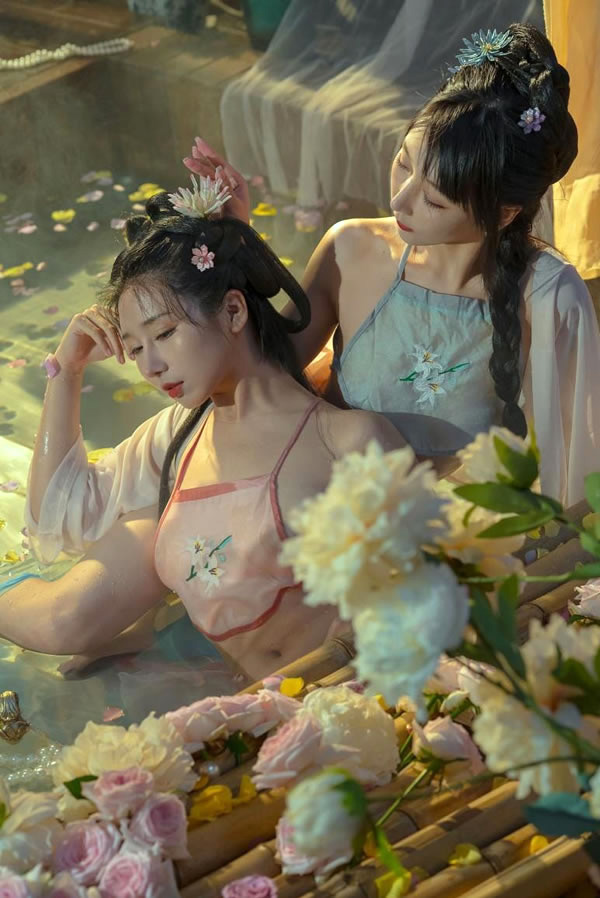 云溪溪+奶桃肚兜美女水池戏耍春光无限