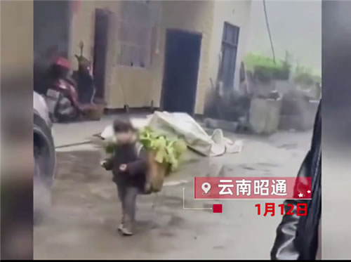 1月12日,云南昭通。一条“小女孩背菜前行背篓比人大”的视频,引起网友们对小女孩的关注。