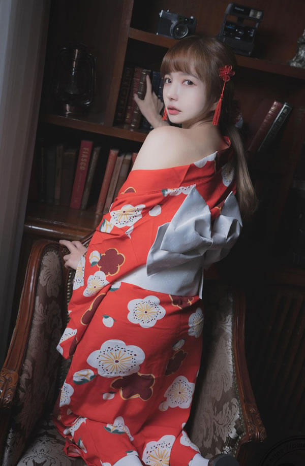 娇滴滴小美女Rua红色和服下的白嫩果体