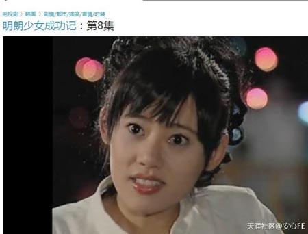 《明朗少女》时秋瓷炫扮演明朗,有网友称除了皮肤很白 原来并不是什么天然美女 虽然底子也不错但是当年绝对不如猪脚张娜拉好看。