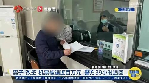 近日,江苏的王先生在起飞前一晚,接到电话称其购买的航班因故障需改签。因不会操作,王先生在对方的引导下,下载了手机共享软件,又按要求转款99.6万验证身份,直到被拉黑才意识到被骗报警。警方通过分析锁定了资金的流向,迅速组成工作组奔赴当地,仅用39个小时,就将涉案资金全部划扣返还成功。王先生也第一时间致电派出所,对全体办案民警表示由衷感谢。