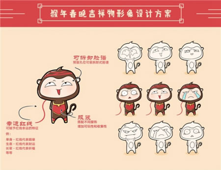 4.本吉祥物可延伸性理解度很广,可作为猴年春晚的一个易辩、易记的良好代言形象。