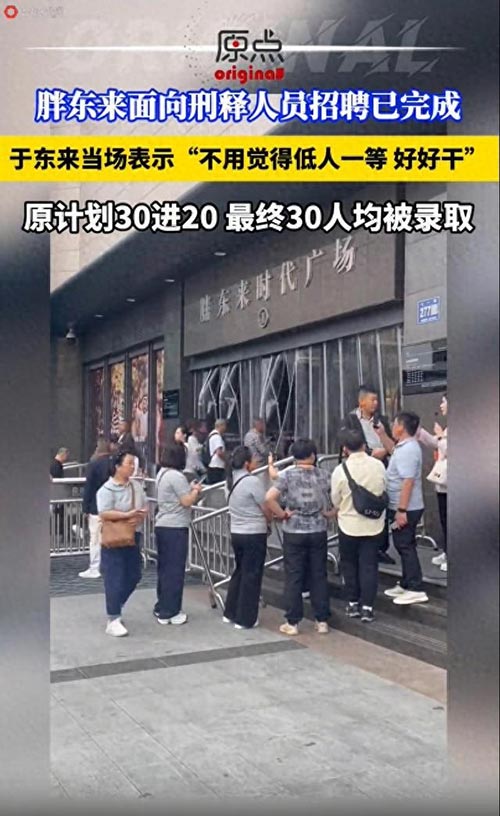 此前,30名刑满释放人员前往许昌胖东来时代广场参与面试。参与面试的刑释人员表示,胖东来方面现场宣布,30人均被录取,后续会根据各自情况分配岗位,入职后有6个月试用期进行“双向选择”。