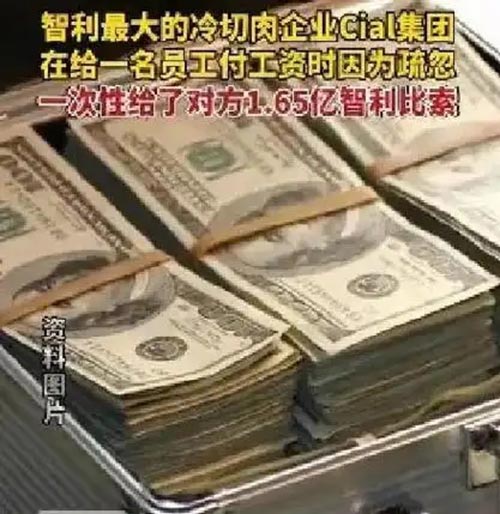 综合《每日邮报》及智利媒体报道,涉事男子是智利一食品公司的行政助理,月薪约50万比索(约3747元人民币)。但在2022年5月,公司却错误地将1亿6500万比索(约 123.6 万元人民币)存入他的账户。