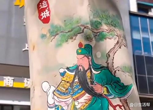 11月20日,山西一名画家在运城市中心街边树洞上作画,一天后被城管责令涂掉,引发网民关注。