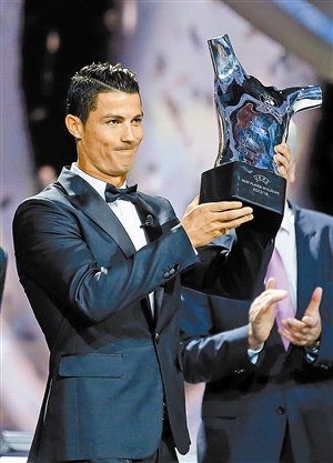 在28日晚的新赛季冠军联赛抽签后,欧足联举行了欧洲年度最佳球员的颁奖仪式,上赛季率领皇家马德里队第10次捧杯的葡萄牙球星克·罗纳尔多荣膺该奖项。