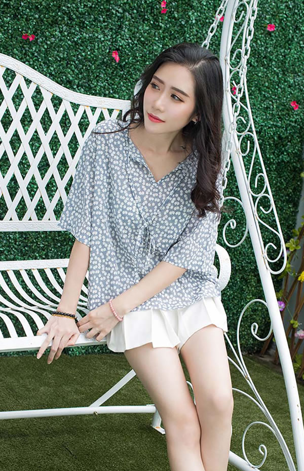 黑底粉花浴袍的美女Sira居家诱惑写真