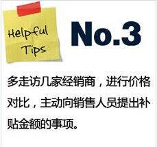 9月11日,国家发展改革委、工业和信息化部、财政部再度公布了“节能产品惠民工程节能环保汽车(1.6升及以下乘用车)推广目录(第一批)车型。共有163款车型登榜,其中包括了102款自主品牌车型,所涉及的品牌包括江淮汽车、比亚迪汽车、长城汽车、上海大众斯柯达、北京现代等品牌。但是如何获得这3000元的补助,你知道吗?以下四支招帮你把补贴全额“拿下”。