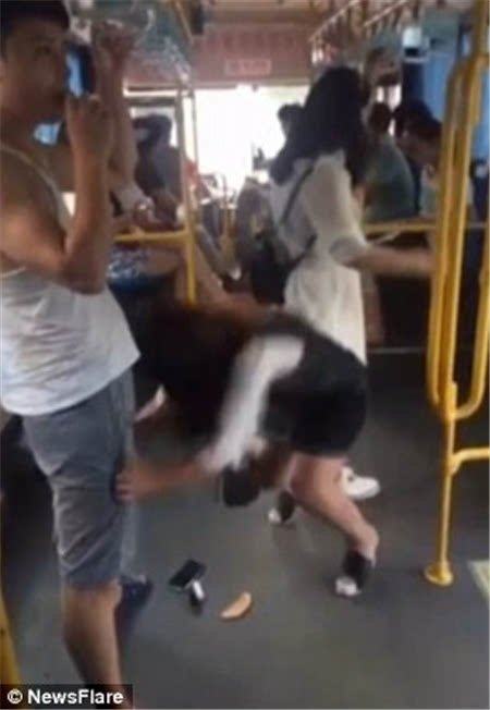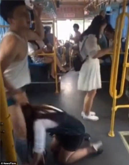 可以发现,女乘客的头还撞到了男乘客的要害,男乘客一脸痛苦地捂住自己的裆部……