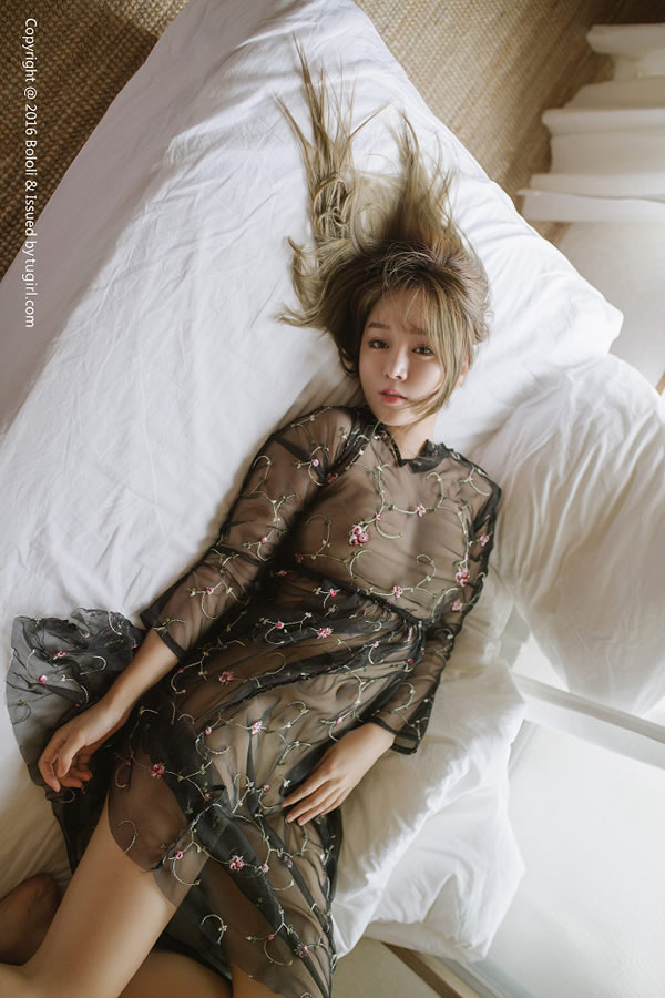 波萝社新刊王雨纯黑色薄纱连身裙+大尺度真空透视凸点诱惑写真