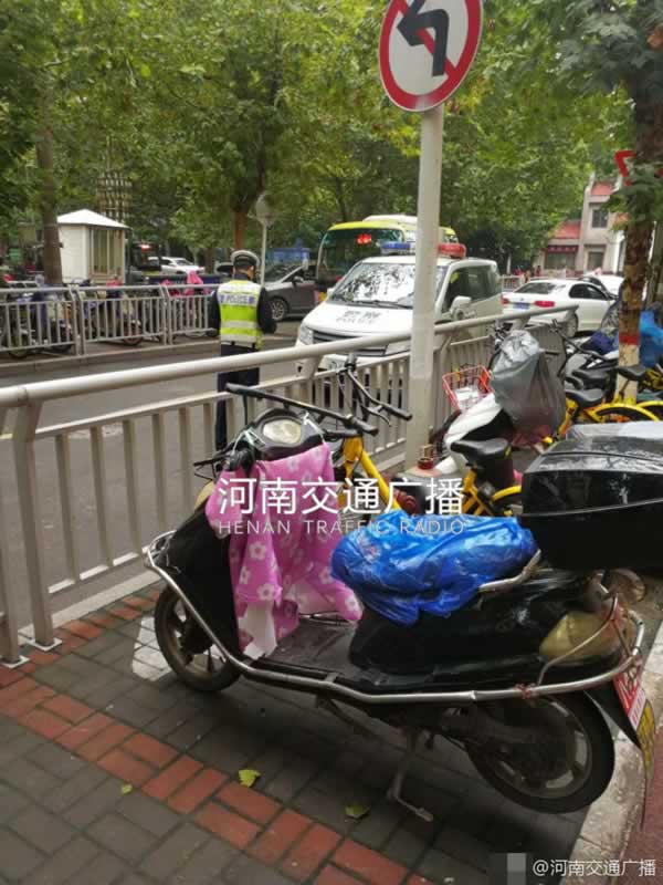 原标题:郑州一警车违停致整条路堵死 被交警贴罚单