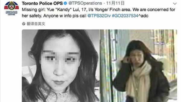 据加拿大媒体报道,当地时间11日下午4点45分左右,警方称已联系上Juanwen Zhang。她当时在距离多伦多500多公里外的蒙特利尔。警方曾呼吁Juanwen Zhang的朋友们不断给她发信息。11日,她手机开机后看到朋友们发来的短信,立即与警方联系。随后,Juanwen Zhang在微信朋友圈报了平安。