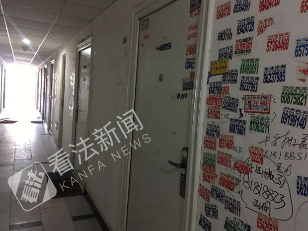 茅侃侃担任董事的一家公司,并没有员工上班,门口贴满小广告 摄/法制晚报·看法新闻记者 李阳煜