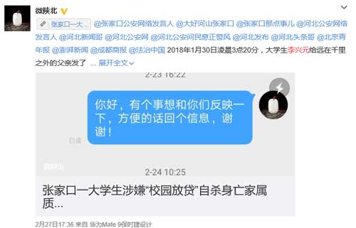 原标题:张家口一大学生涉嫌“校园放贷”自杀身亡家属质疑当地公安部门不作为