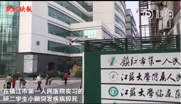 实拍江苏大学硕士生医院实习猝死 值班近15小时曾多次喊累