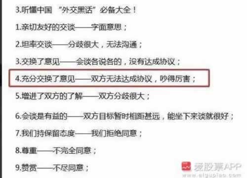 盘后新华社也发了官方通稿,信息量没有外媒多,但中国的官媒通稿,历来都是用词越少,事情越大。通稿中提到“充分交换了意见”,翻译过来就是“双方无法达成协议,炒得很凶";而“在一些问题上还存在较大分歧”这句,完全可以说是“谈崩了”,美方的要求可能超出了中国底线。