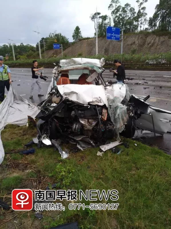 5月13日凌晨,防城港市港口区东湾大道黄屋路段发生一起交通事故,一辆小车和一辆大货车发生追尾,事故造成小车上5名乘员(均为男性)当场身亡!
